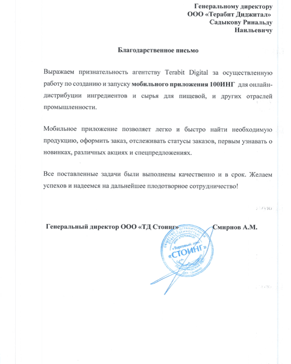 Приложение для дистрибьютора сельхозпродукции (NDA)